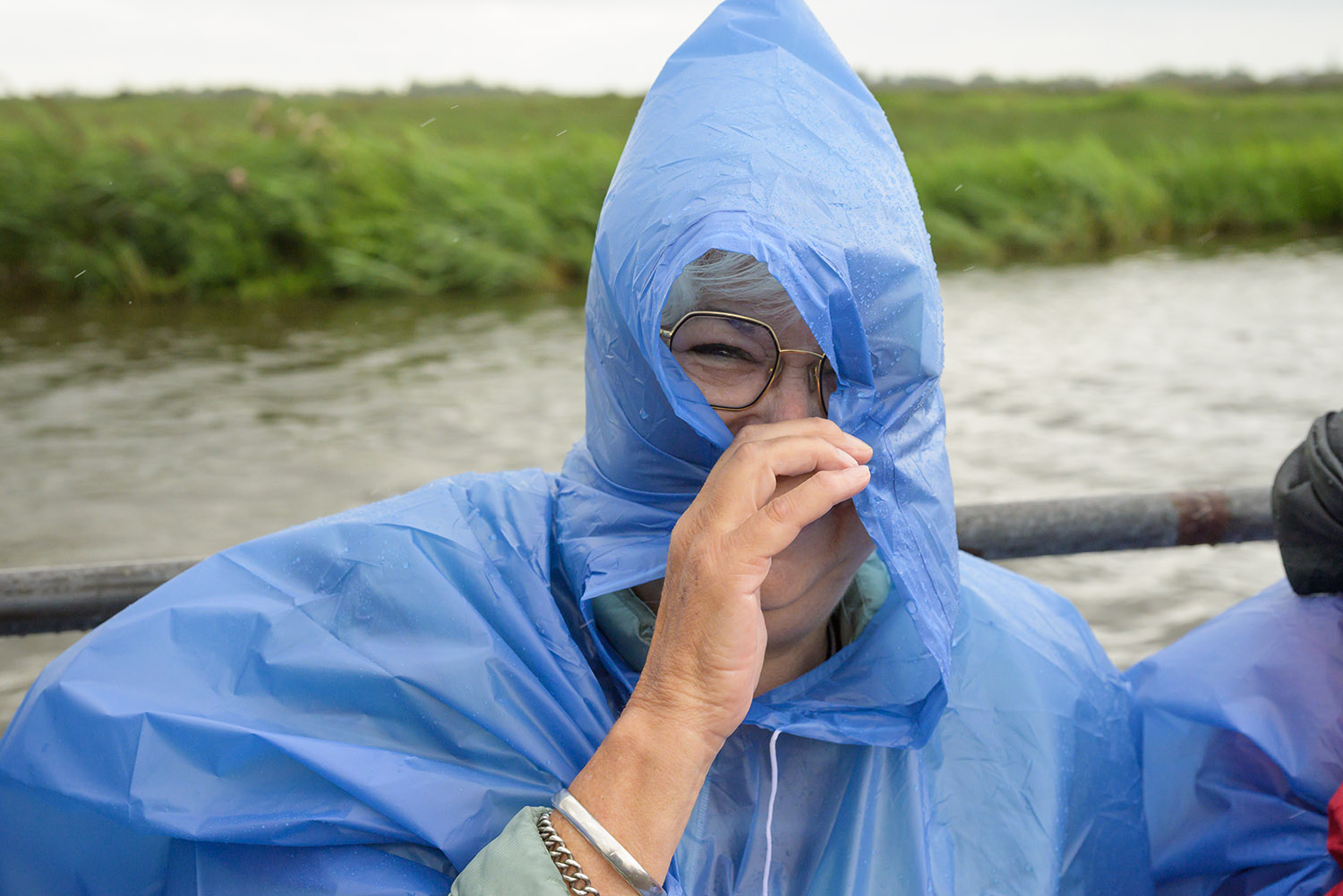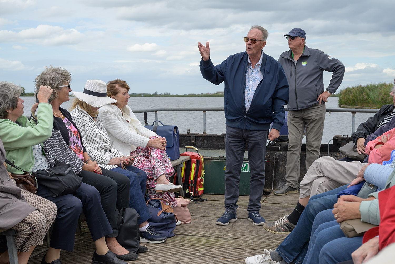 Beide boten hadden een eigen gids aan boord, Daniëlle en Peter – de eerste vertelde veel over de ons omringende natuur en de vogels die we tegen kwamen en de ander (Peter) vertelde boeiend over de geschiedenis van de gebieden waar we doorheen voeren. Het was de bedoeling dat halverwege de tocht de boten dan bij elkaar kwamen en de gidsen zouden wisselen van boot. Hetgeen ook gebeurde…