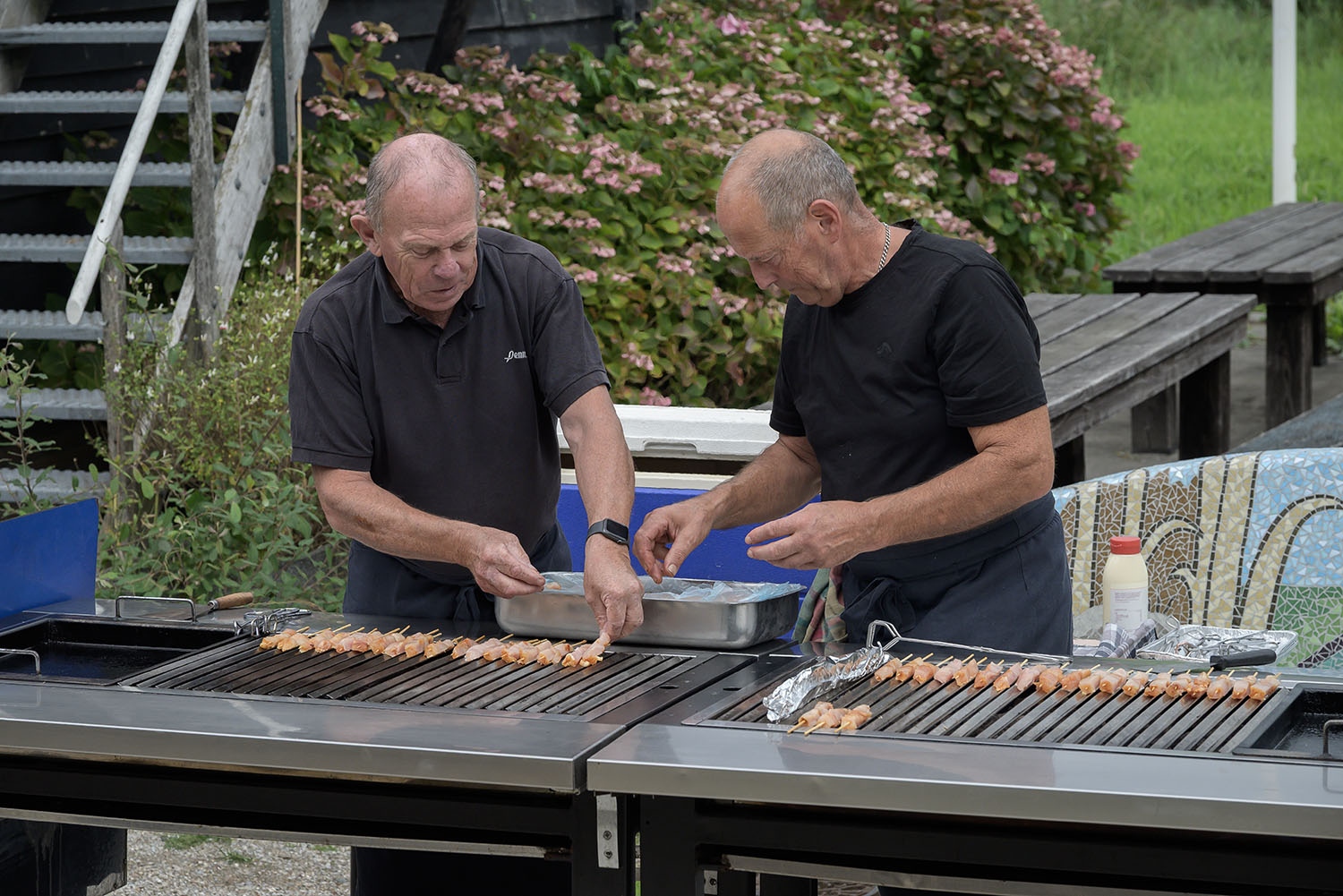 De mannen van Straathof Catering uit Oostzaan waren juist druk bezig om de barbecues op te stellen en aan te steken en ook het buffet met het overige lekkers stond al klaar.