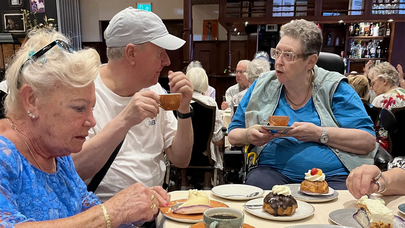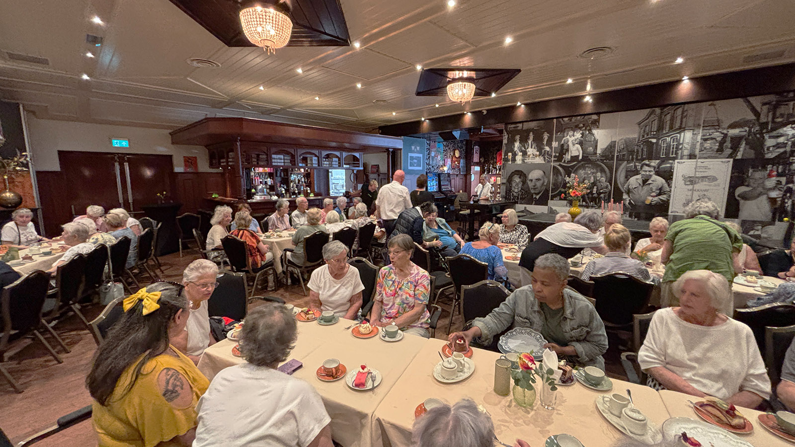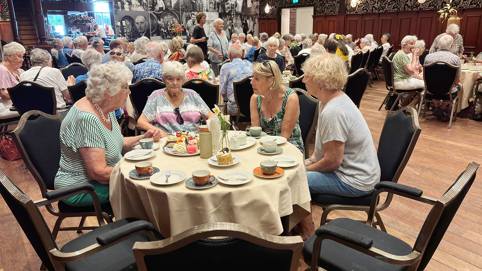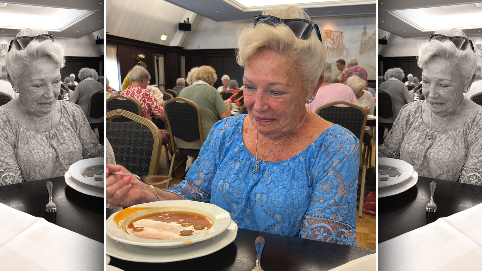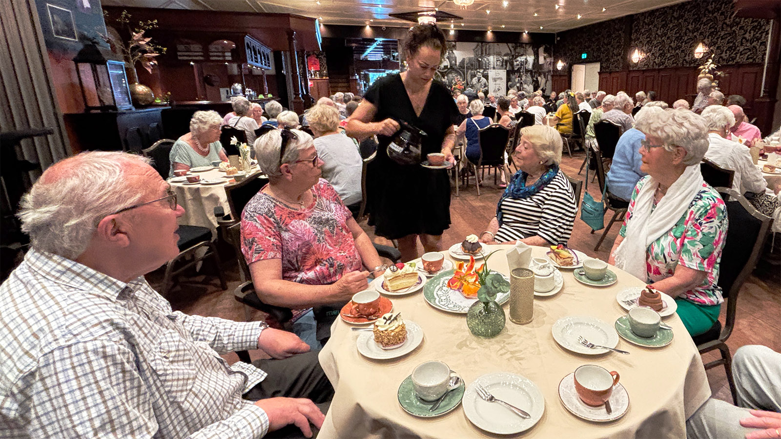In Joure bij partycentrum It Haske kregen we een lunch aangeboden. We begonnen met soep, tomaten of groenten, en daarna werden diverse soorten brood op tafel gezet. Het beleg bestond uit verschillende soorten vleeswaren, twee soorten kaas, jam en hagelslag. Sommigen van ons miste de kroketten, maar met het hete weer was het misschien beter zo. Voor de vochthuishouding was er koffie, thee, melk, karnemelk en water. Dus veel drinken met deze hitte en dat hadden ook de organisatoren van dit uitje zeker gedacht, want bij terugkomst in de bus lag er op iedere stoel een flesje water.