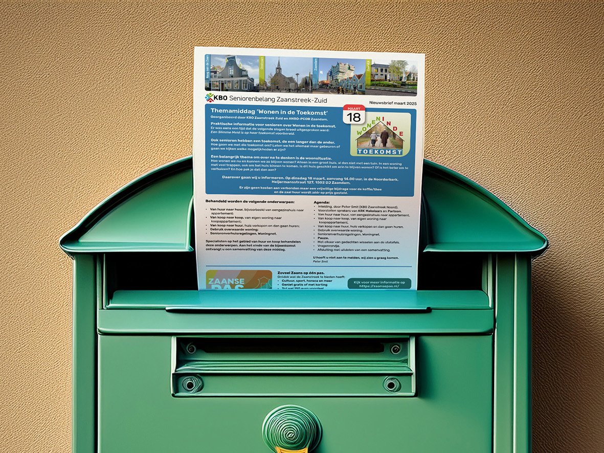 Tien maal per jaar zorgen de diverse vrijwillige bezorgers van het KBO Magazine (inclusief onze eigen Nieuwsbrief) ervoor dat dit alles feilloos bij u in de brievenbus- of op de mat valt. Echter, zoals iedereen zijn zij ook ‘een mens van de dag’ en het gebeurt dan ook wel eens dat één of meer van hen om de een of andere reden moeten afzeggen.