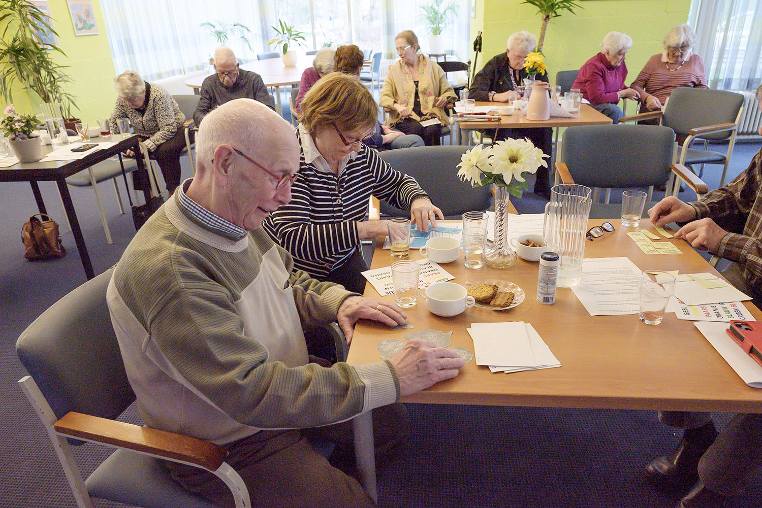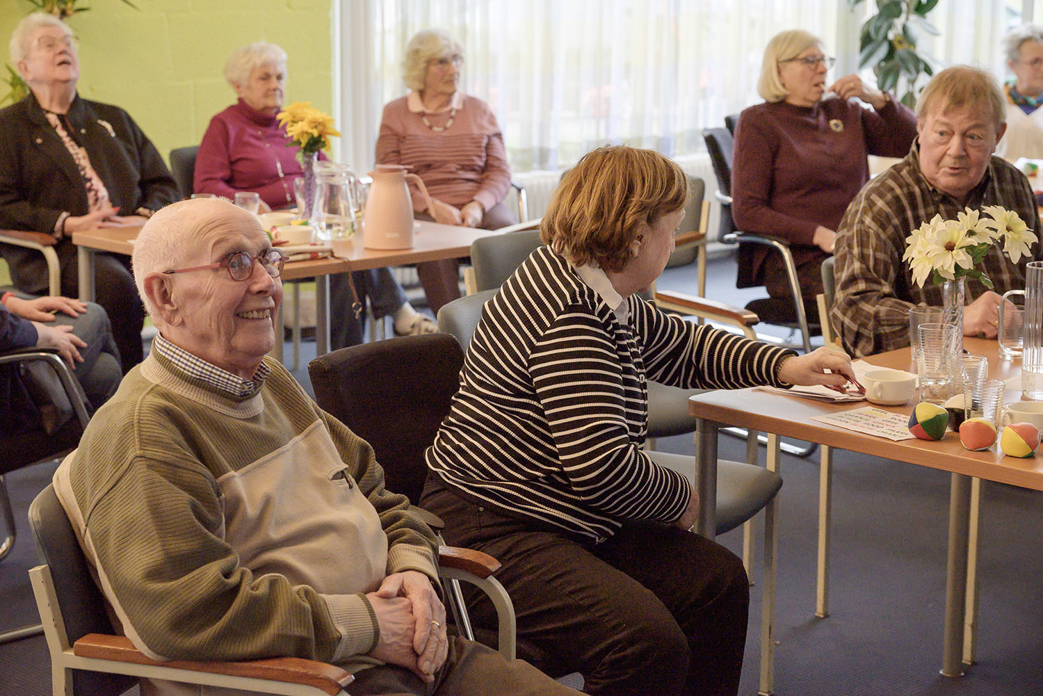 Bingo op vrijdag 6 juni 2025. Om 13.30 uur druppelden de deelnemers langzaam binnen. De bingo werd gehouden in de Benedenzaal van de St.Jozefkerk. Leuk dat Laura in haar rolstoel ook van de partij kon zijn. In totaal waren er 20 deelnemers, hoofdzakelijk dames. Dus u kunt zich voorstellen dat het een gekakel van jewelste…